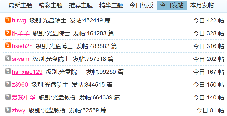 (1)每日发帖在100以上的: