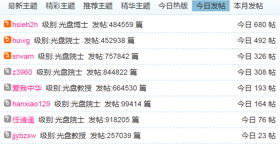 (1)每日发帖在100以上的: