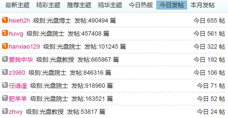 (1)每日发帖在100以上的: