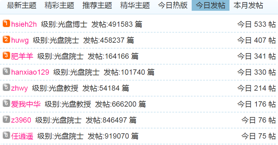 (1)每日发帖在100以上的: