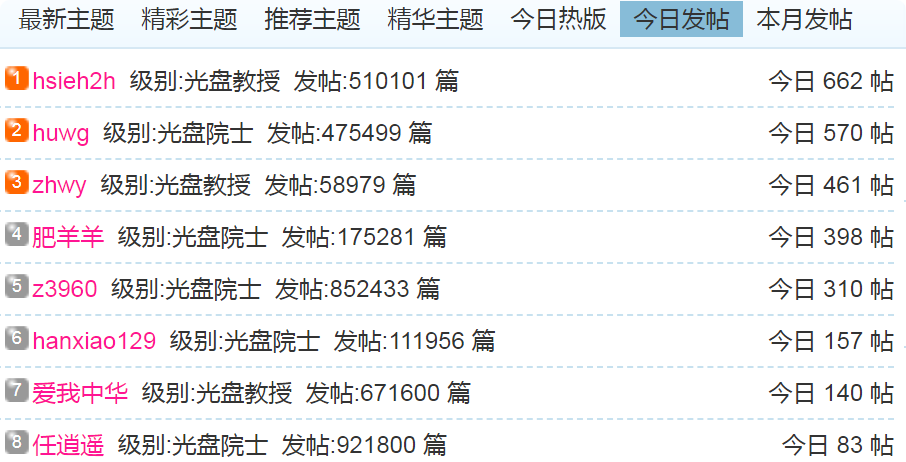 (1)每日发帖在100以上的:
