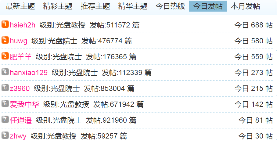 (1)每日发帖在100以上的: