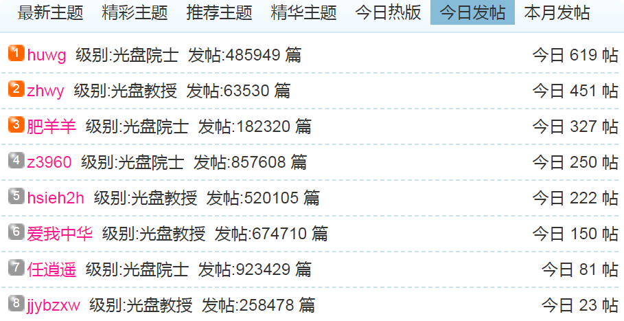 (1)每日发帖在100以上的:
