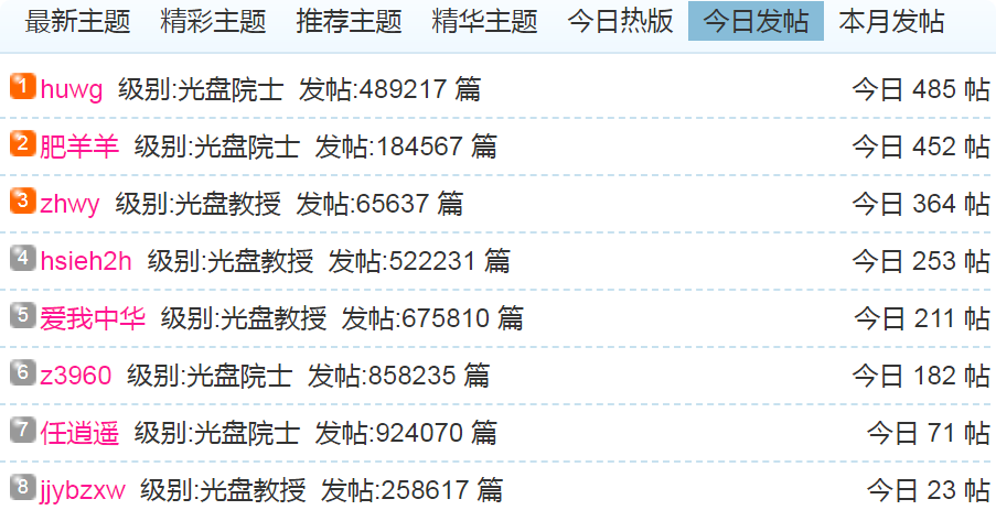 (1)每日发帖在100以上的: