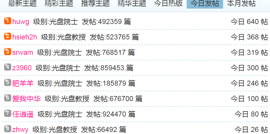 (1)每日发帖在100以上的: