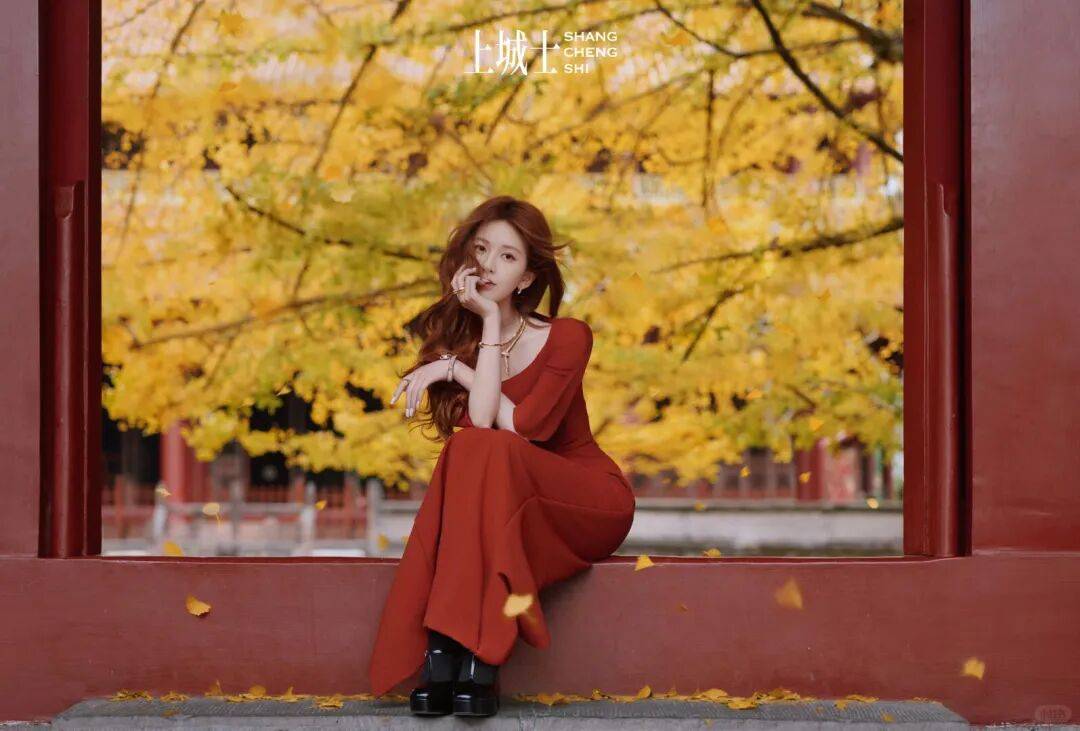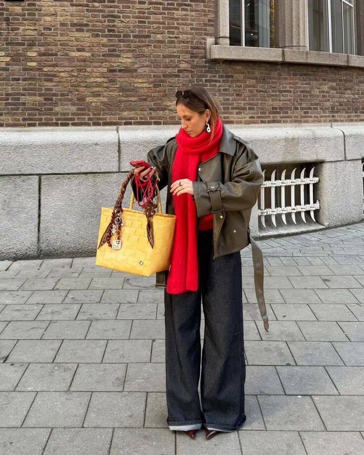 哪怕是上半身一条红色围巾,与黄色遥相呼应着,也很美。