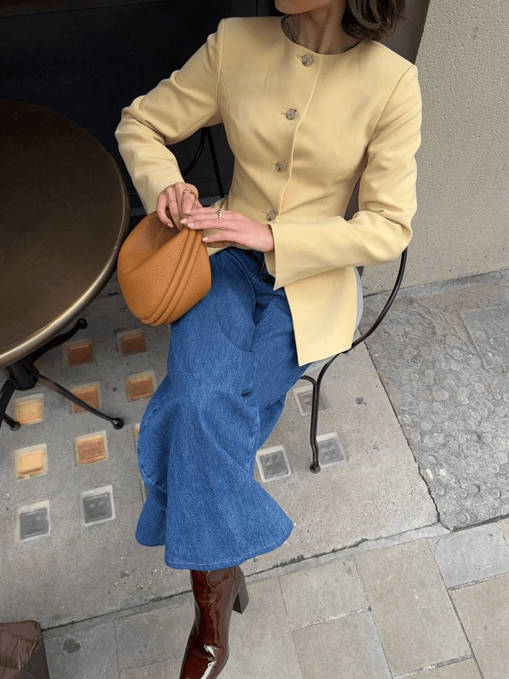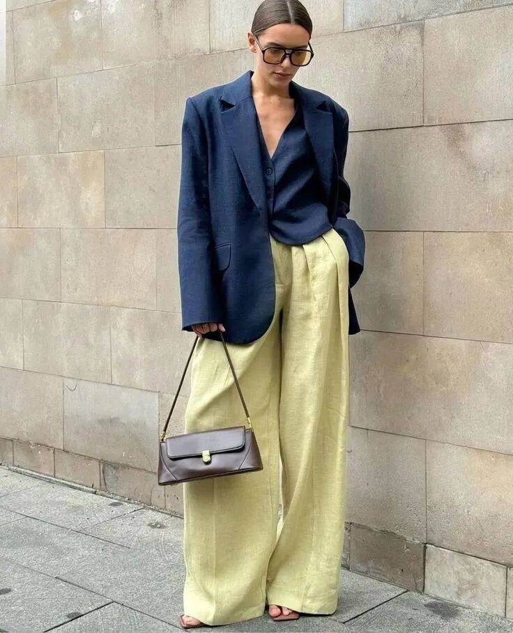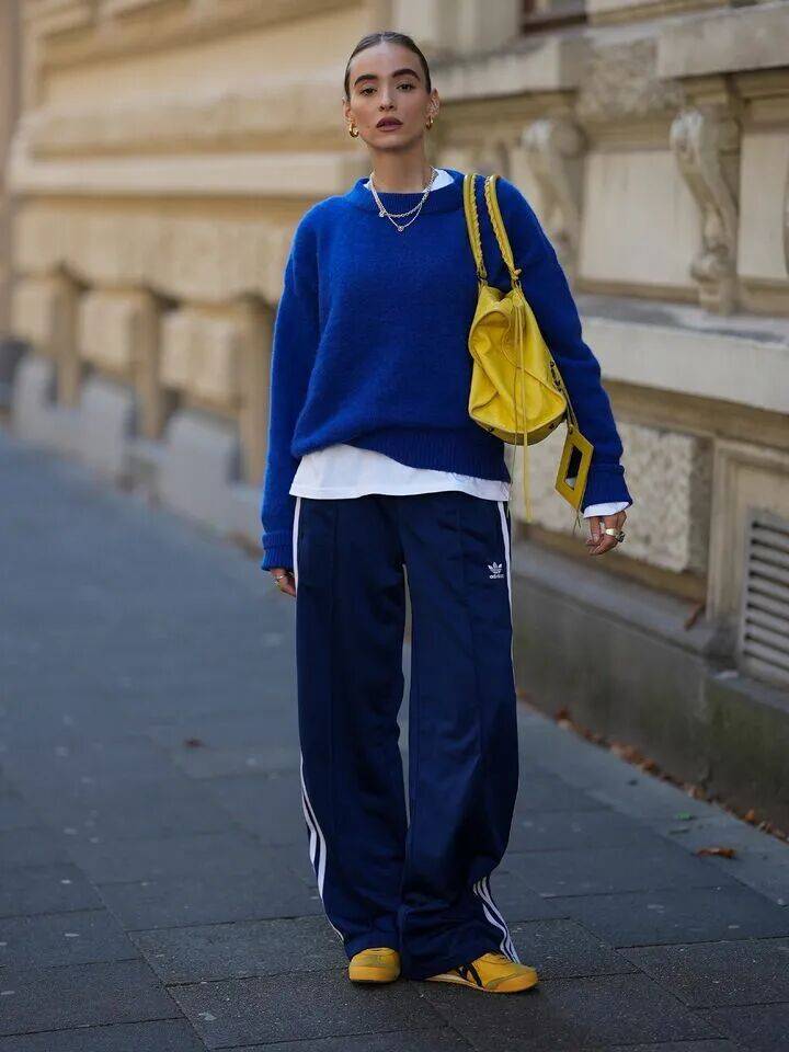 在穿搭中,蓝和黄放在一起,天生带着恰到好处的冷暖平衡。