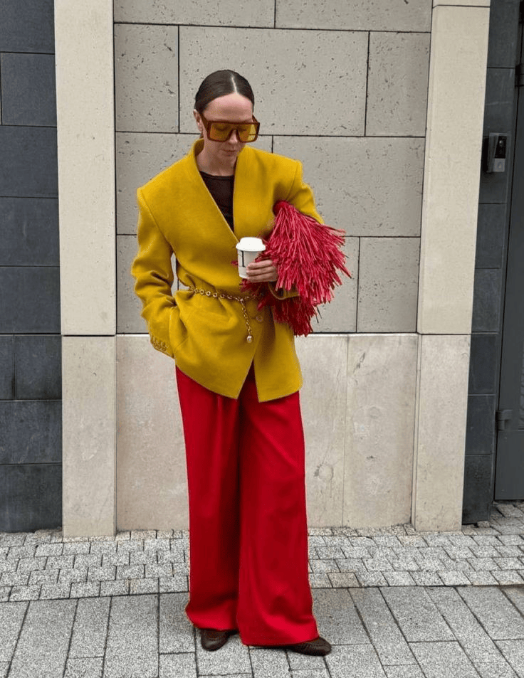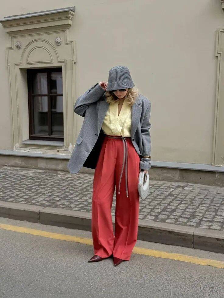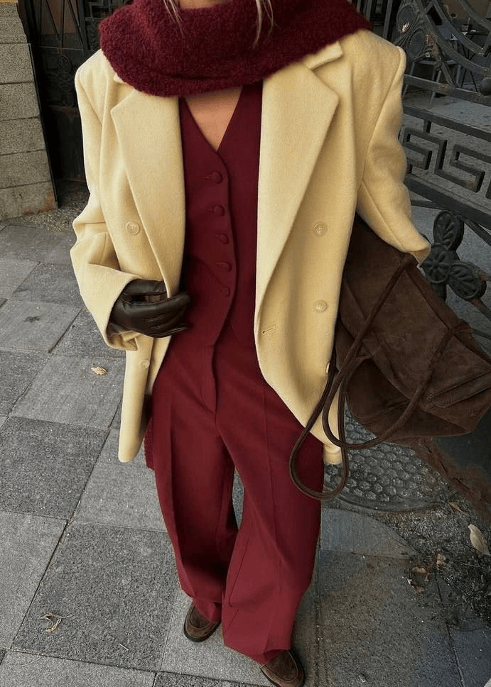 这组配色穿在身上,红色不必占满全身,红要够深邃,黄要够清透。