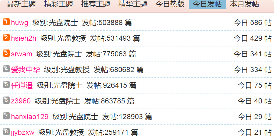 (1)每日发帖在100以上的: