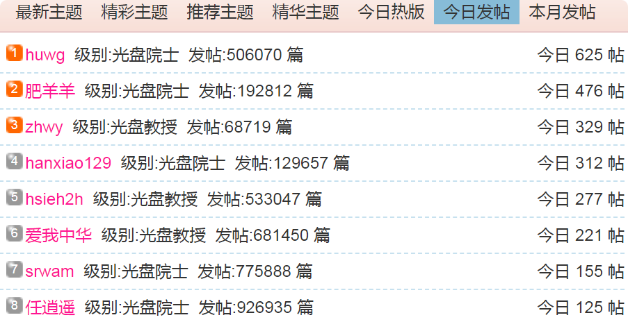 (1)每日发帖在100以上的: