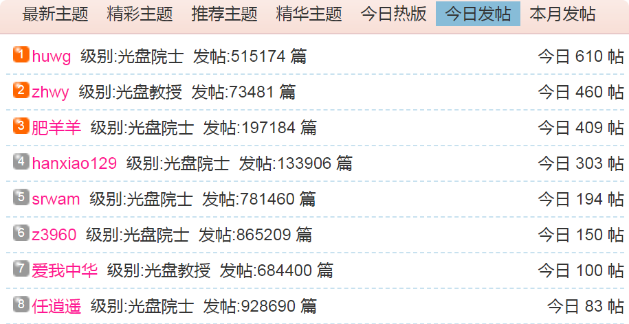 (1)每日发帖在100以上的: