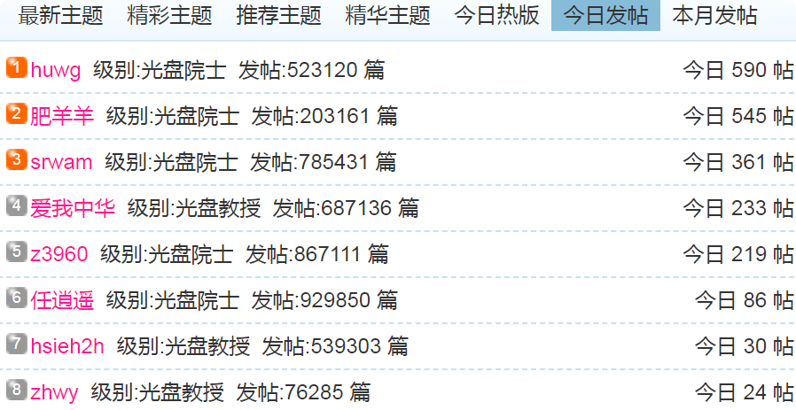 (1)每日发帖在100以上的: