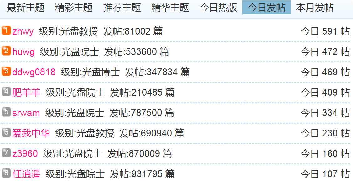 (1)每日发帖在100以上的: