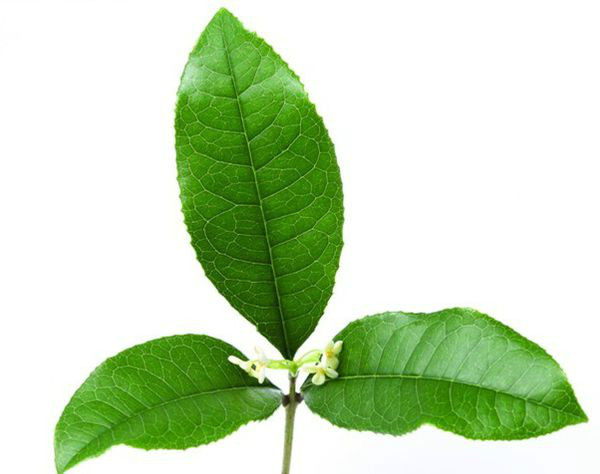 叶片:丹桂的叶片墨绿色,细长,叶子边缘有明显的细密锯齿或全缘,尾尖明显。