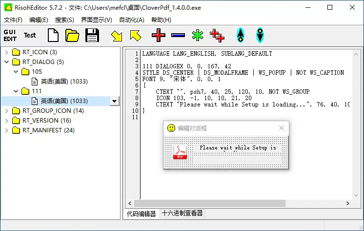 RisohEditor能够添加,编辑,导出,克隆和移除EXE/DLL/RC/RES文件里面的资源数据。