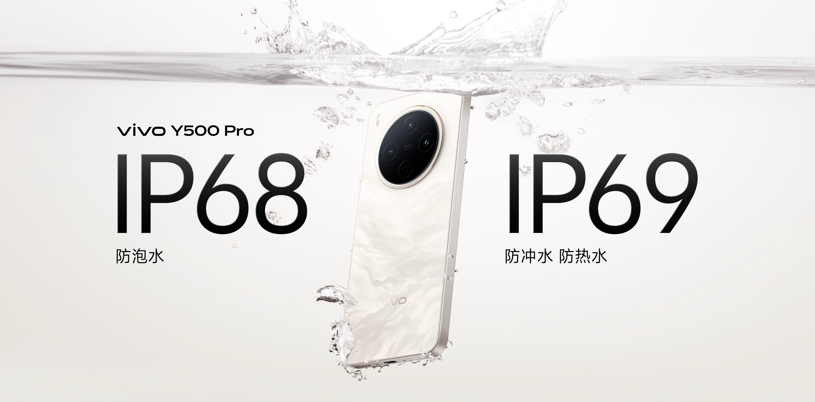 耐用和续航始终是vivo Y系列的优势。耐用方面,vivo Y500 Pro在行业内首获国标可靠性认证,高温、极寒、高湿极端环境超耐用。同时,vivo Y500 Pro还支持IP68+IP69满级防水能力。