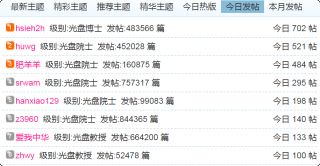 (1)每日发帖在100以上的: