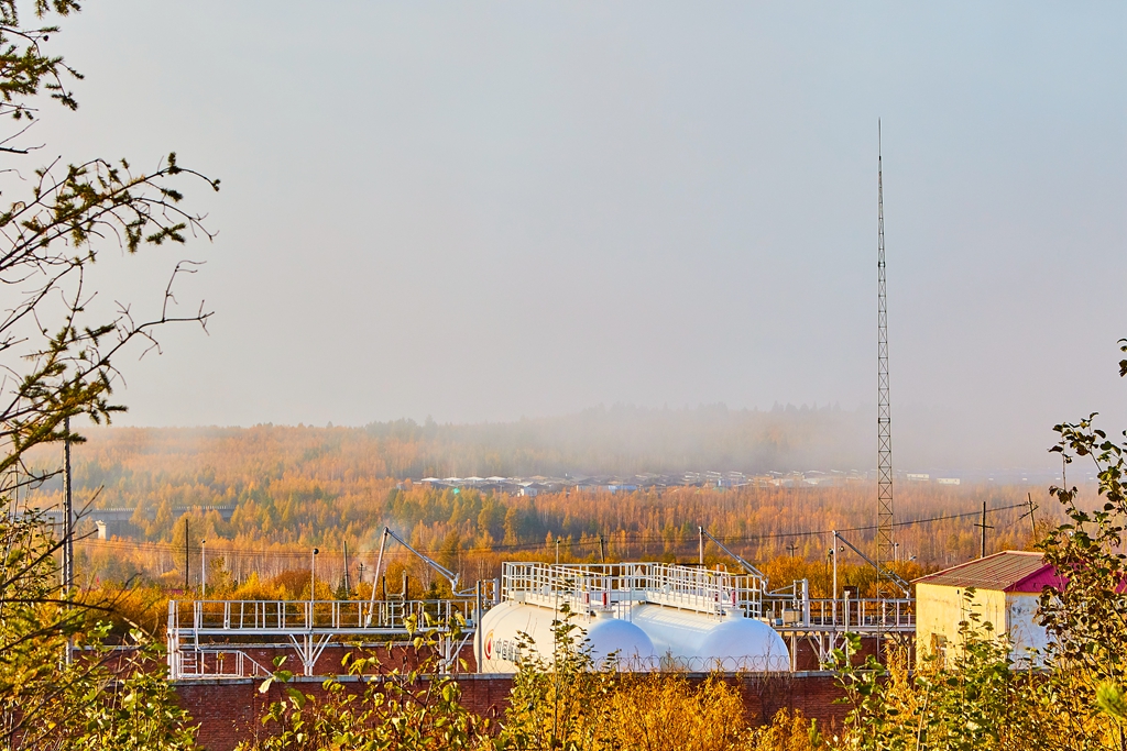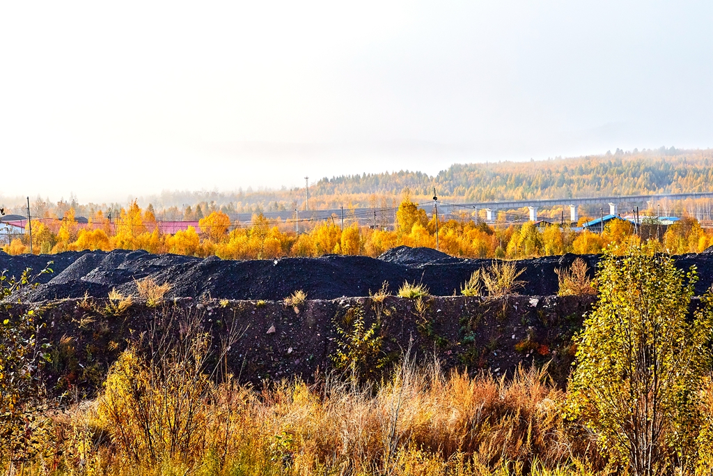 整个矿区都很安静,我和老伴就在路上边走边拍摄,风光极美,秋色浓郁,山林中色彩斑斓,白雾还没有完全消散,赶紧按快门。也不敢随意想走,怕遇到狗,听到狗叫就止步返回再走另一条路。遇见的行人不到2位数,用疑惑的眼光看我们拍摄。