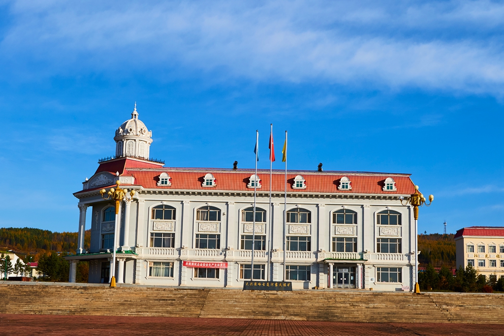 图强下车后司机接我们前往阿木尔,1971年,修建嫩林线樟岭古莲段铁路时,在此设立劲涛火车站,属阿木尔林业局管辖。所需物资运到阿木尔后各部队在派车拉回。当时我们连的营房在阿木尔,我很想回去看看。只能凭记忆找到大概的方位,原始建筑都找不到印记了。现在的阿木尔是个漂亮的蓝莓小镇,街道整洁,建筑壮观。镇上建有蓝莓园,蓝莓酒庄。以蓝莓为产业形成了很大的市场,来漠河的游客会慕名前来购买土特产,游客很多。