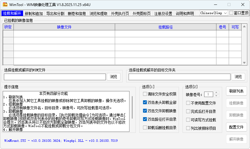 [系统软件]WIN映像文件处理工具 | WimTool (v1.8.2025.11.25)
