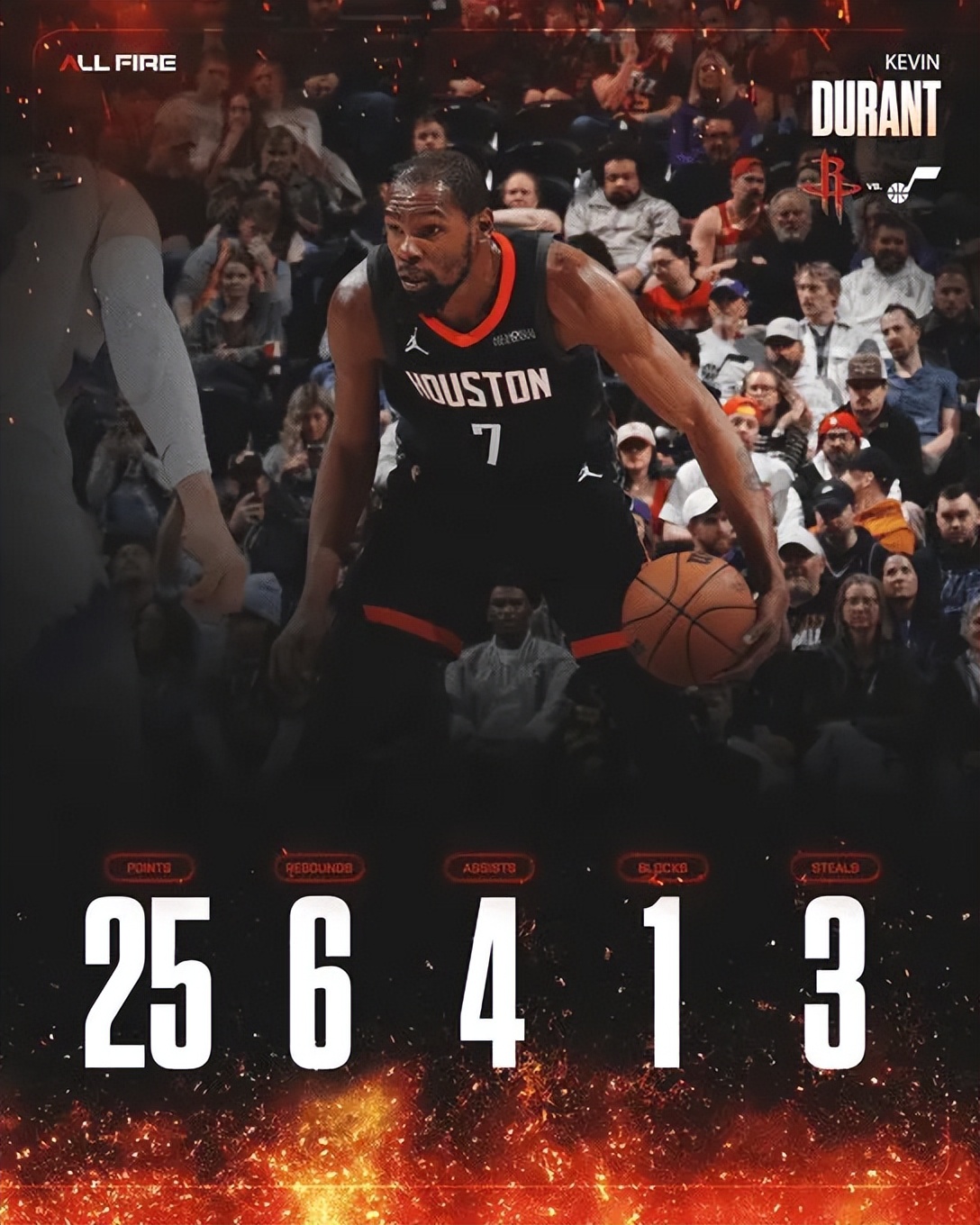 那场比赛谢泼德就是火箭的绝对进攻核心,持球单打、撤步三分、无球跑位,样样精通。这一场杜兰特回归,他立刻切换成“保罗模式”,全场只出手8次,仅得9分,但送出了6篮板4助攻4抢断2盖帽,正负值+33全场最高!把球权和出手机会全部让给杜兰特、申京、史密斯这些大哥,自己退居二线专注组织和防守,却用无处不在的协防和抢断彻底破坏了爵士的进攻节奏。