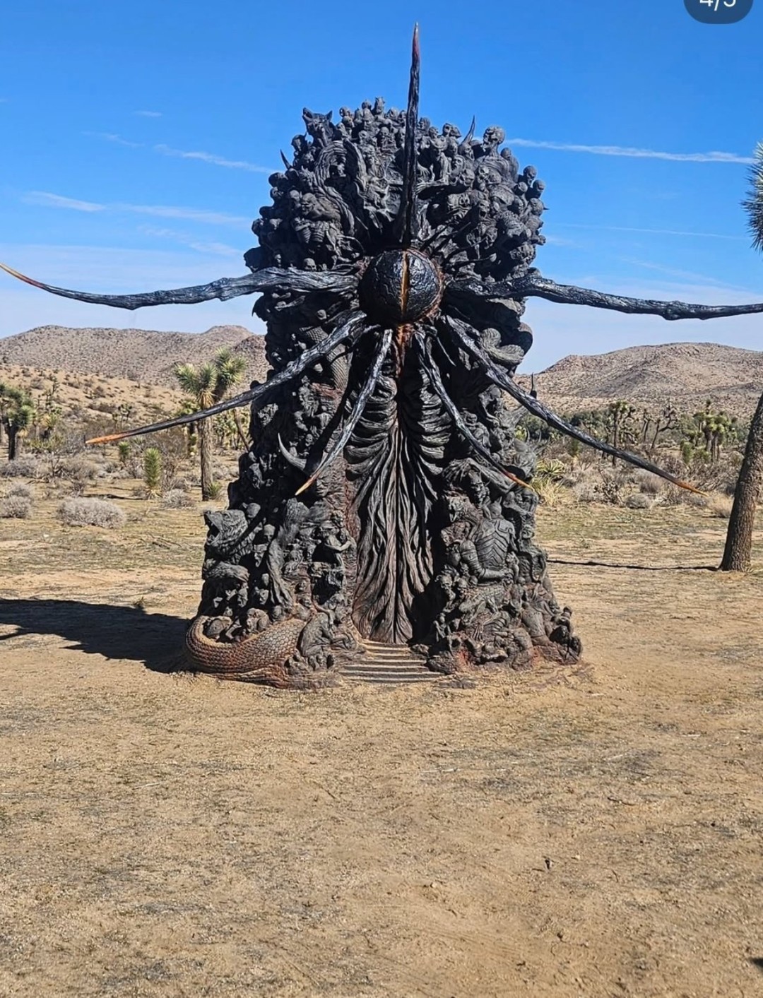 在坐标被破译后,有热心的游戏爱好者立刻动身前往该地点进行实地探索。令人震惊的是,他们果然在荒芜的沙漠中发现了一座特意安置于此的奇特金属雕塑。这座雕塑结构复杂,中心部分是一个造型怪异、被部分人形容为“太空外星人”的形态;而其整体蜿蜒的盘绕结构,则让许多玩家第一时间联想到了畅销游戏《战神》中极具标志性的角色——“世界之蛇”。