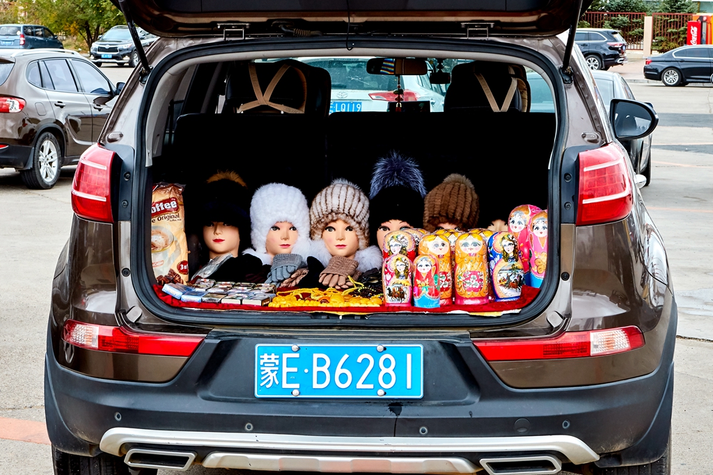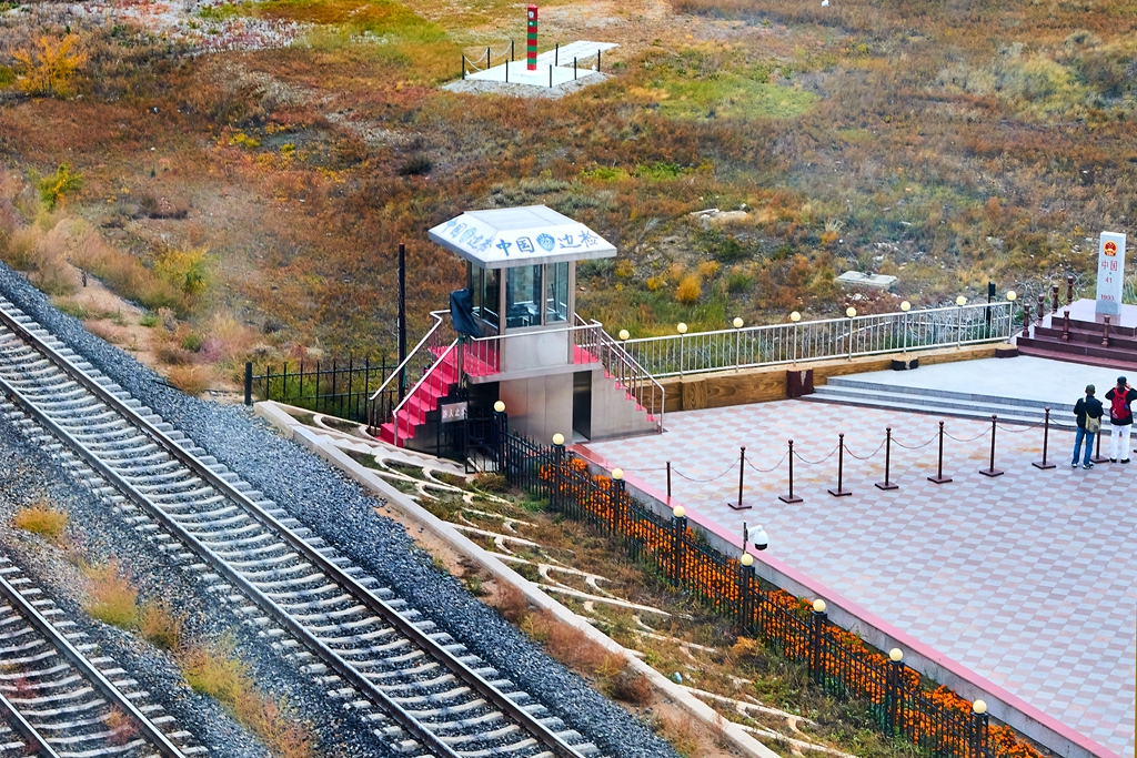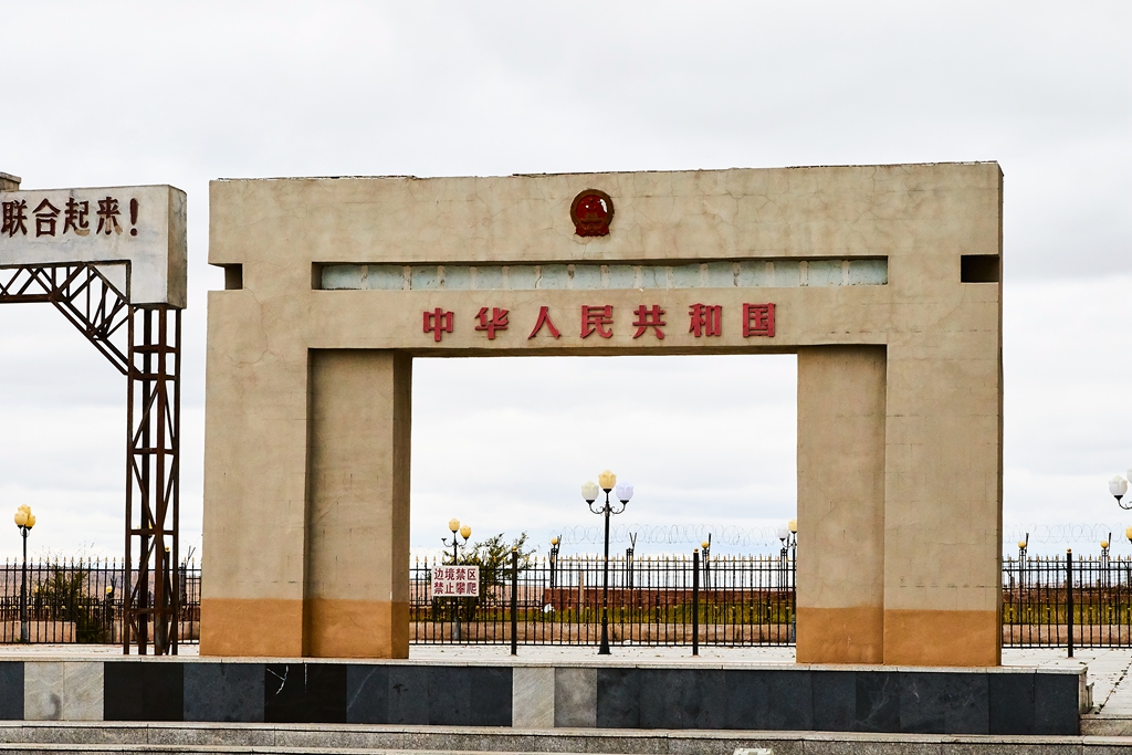 天气有些冷了,把冲锋衣的帽子都带好了。在国门和所有的乘客一样,在界碑前留影,拍摄国门的雄伟。国门景区很大,走走看看的正准备离开,听到了火车声。赶紧向国门的方向跑,一辆满载木材的火车驶进了国门。赶紧按快门,虽然还是有些远,也都抢下了火车驶过国门的壮观景象,特别高兴。走出国门景区要经过很多商铺,什么也没有买就出来了。