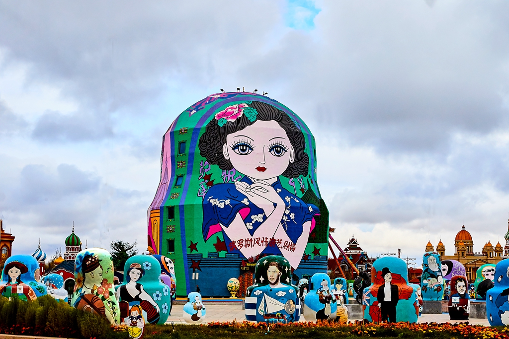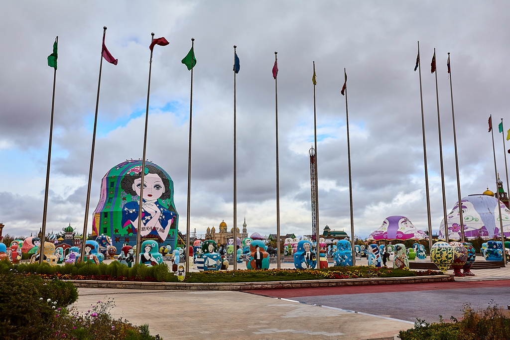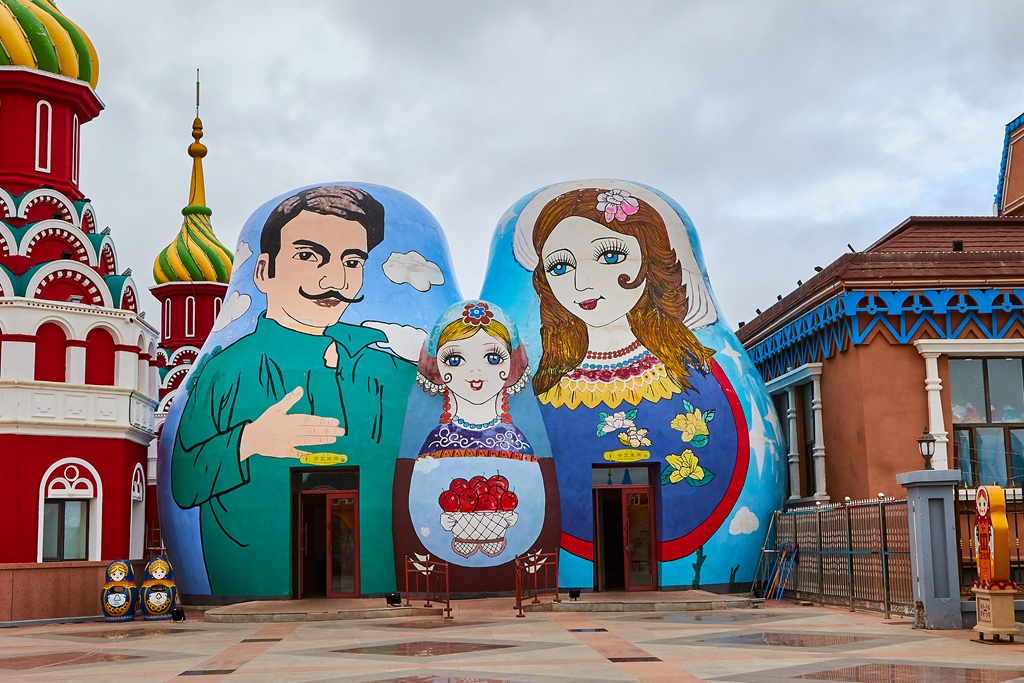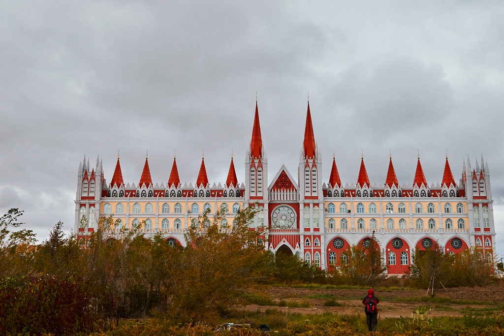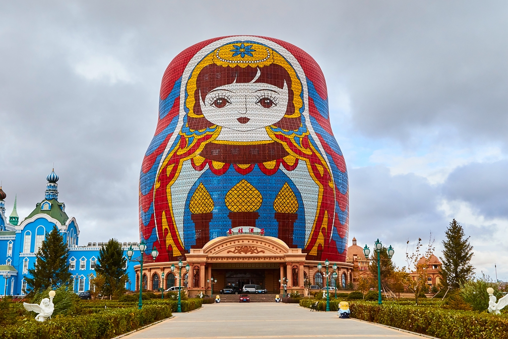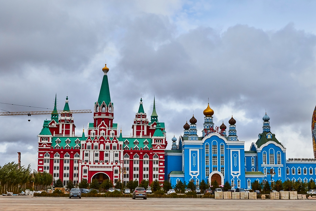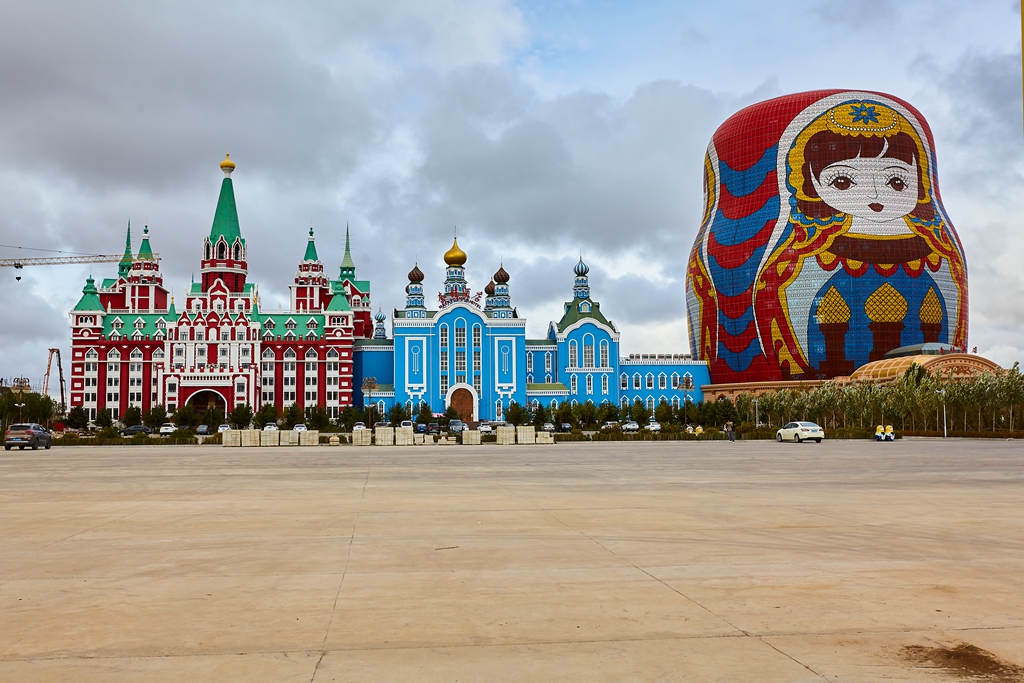 走出国门景区,决定步行回宾馆。一路上看到很多在建的建筑,拍摄了套娃景区的套娃。没做好功课,不知道网上看到的最大的那个套娃是个酒店,,因为因为返回北京的车票我到了满洲里下了火车就去自助出票了,临近国庆节,退票担心再买不到卧铺票,只好放弃住一晚的想法。路边还有一些不知道是什么名字的俄罗斯风格的建筑在建设。快到市里了,担心下雨,就乘公交车回到了火车站。公交车票价一元,间隔很短,人不算多,景点都能去到,很实惠。