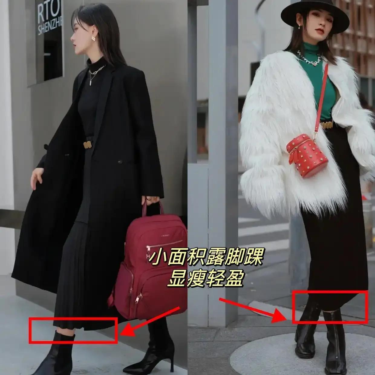 而且,有的时候我们在穿裙子,没有必要全部选择中筒靴。把鞋子全部藏在裙子里面,小面积的露出脚踝,或者是露出一点肌肤,会更显瘦,让你变得更加轻盈时髦。