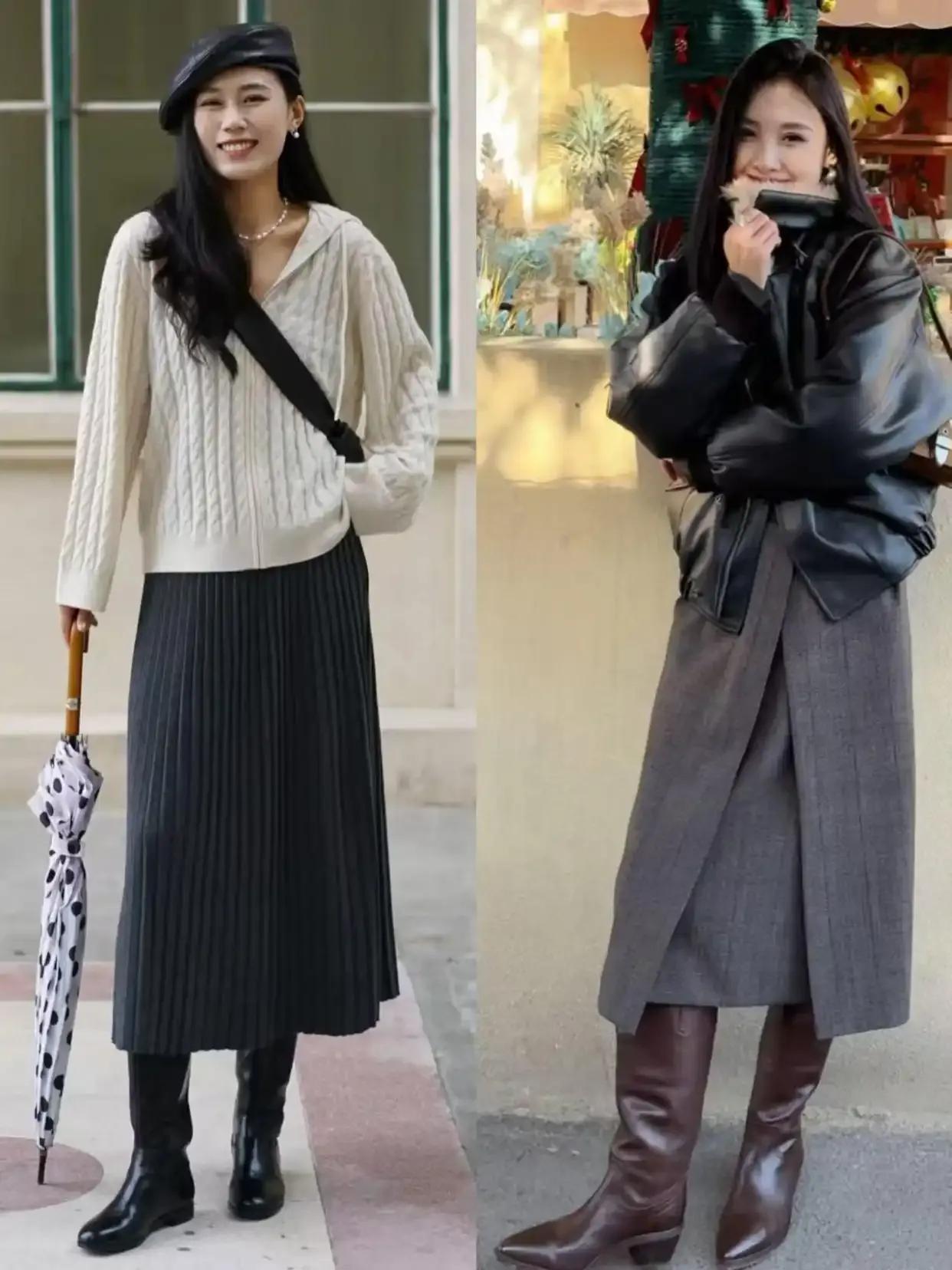 今年的冬季,想让自己的穿衣打扮别那么臃肿显胖,推荐选择用裙子搭配靴子,这样的组合既保暖又时尚。可以选择 A 字半身裙或者伞状半身裙,既遮肉又显瘦。百褶半身裙穿搭还能让你温柔优雅,轻松解锁各种优雅女人味的搭配方案,小个子也能穿出大长腿。