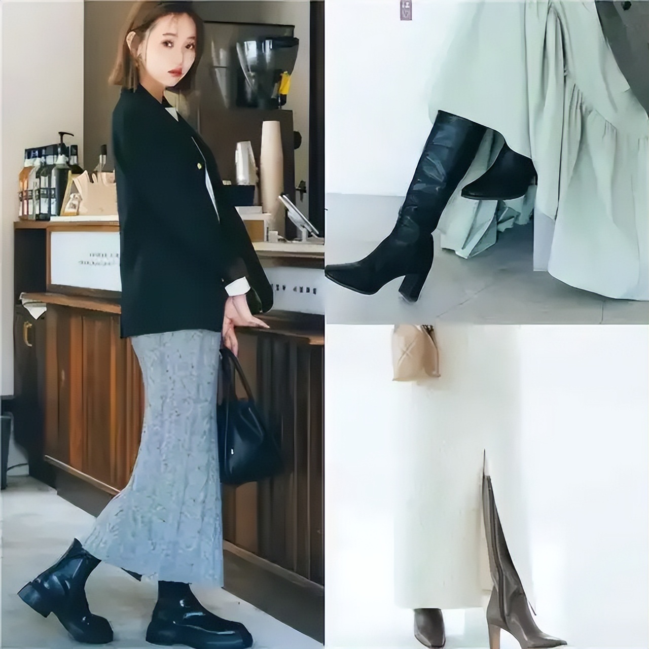 Tips①:黑色短靴 VS 棕色高跟的中筒靴