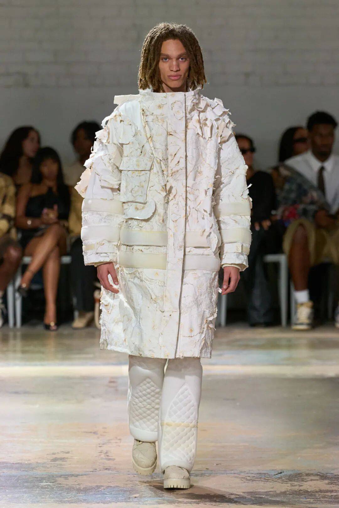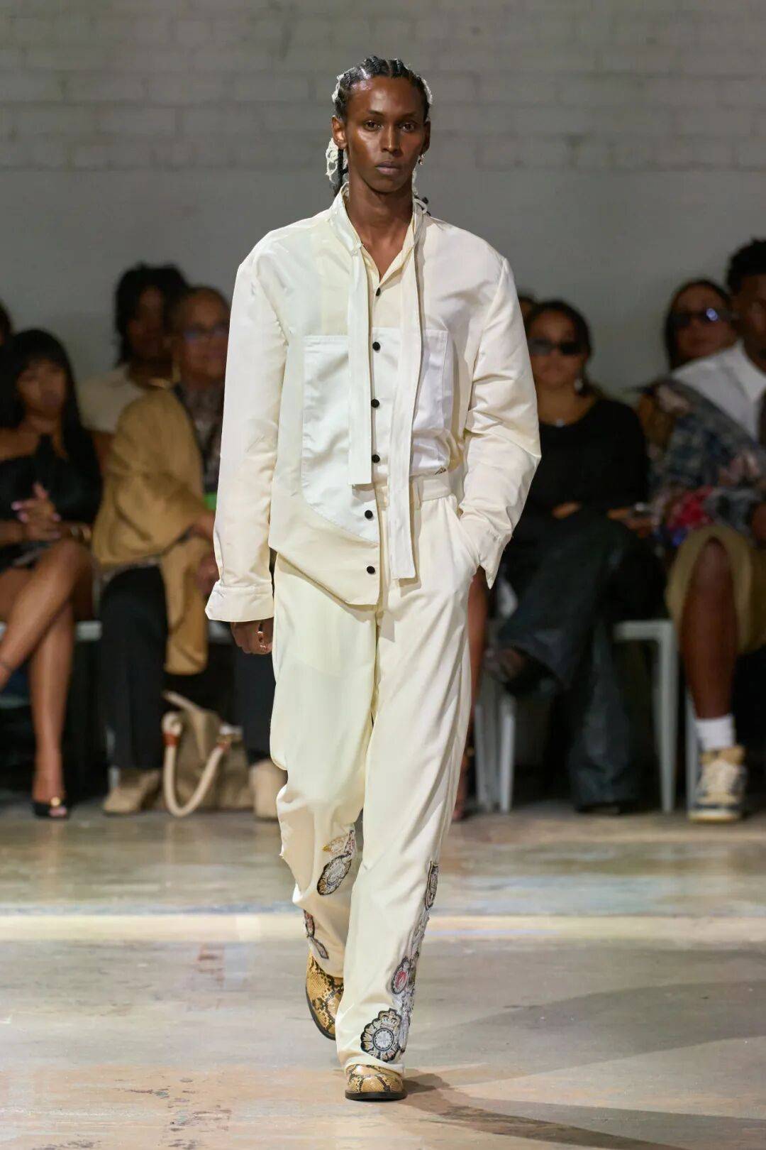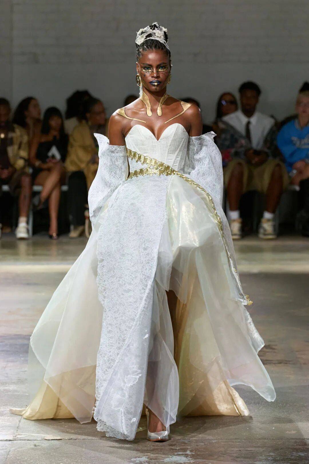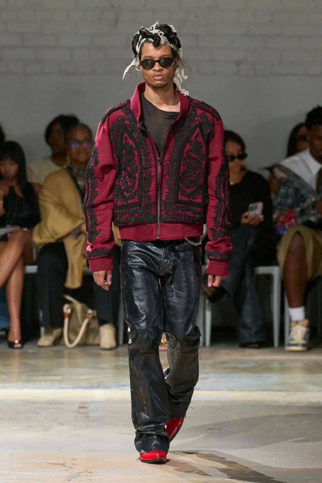 Who Decides War 2026春夏系列"Read the Room"通过材质实验与叙事性设计,呈现了一场关于"毁灭与重生"的视觉盛宴,不仅延续品牌标志性的解构美学,更在剪裁与女性表达上实现突破。这场融合哥特美学与街头精神的秀场,成为纽约时装周上探讨"时代精神"的重要篇章。