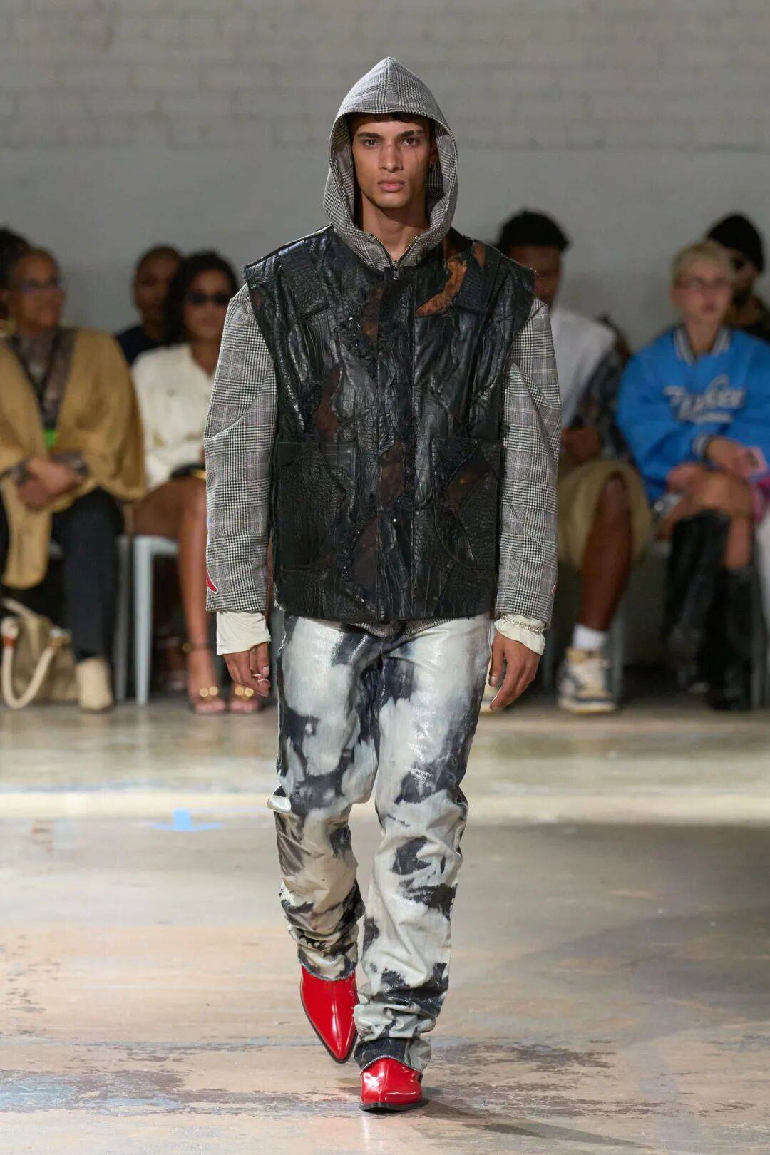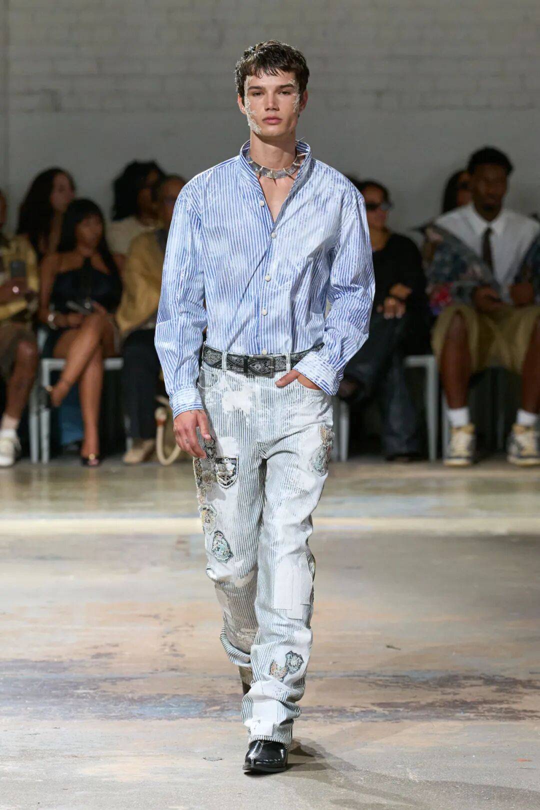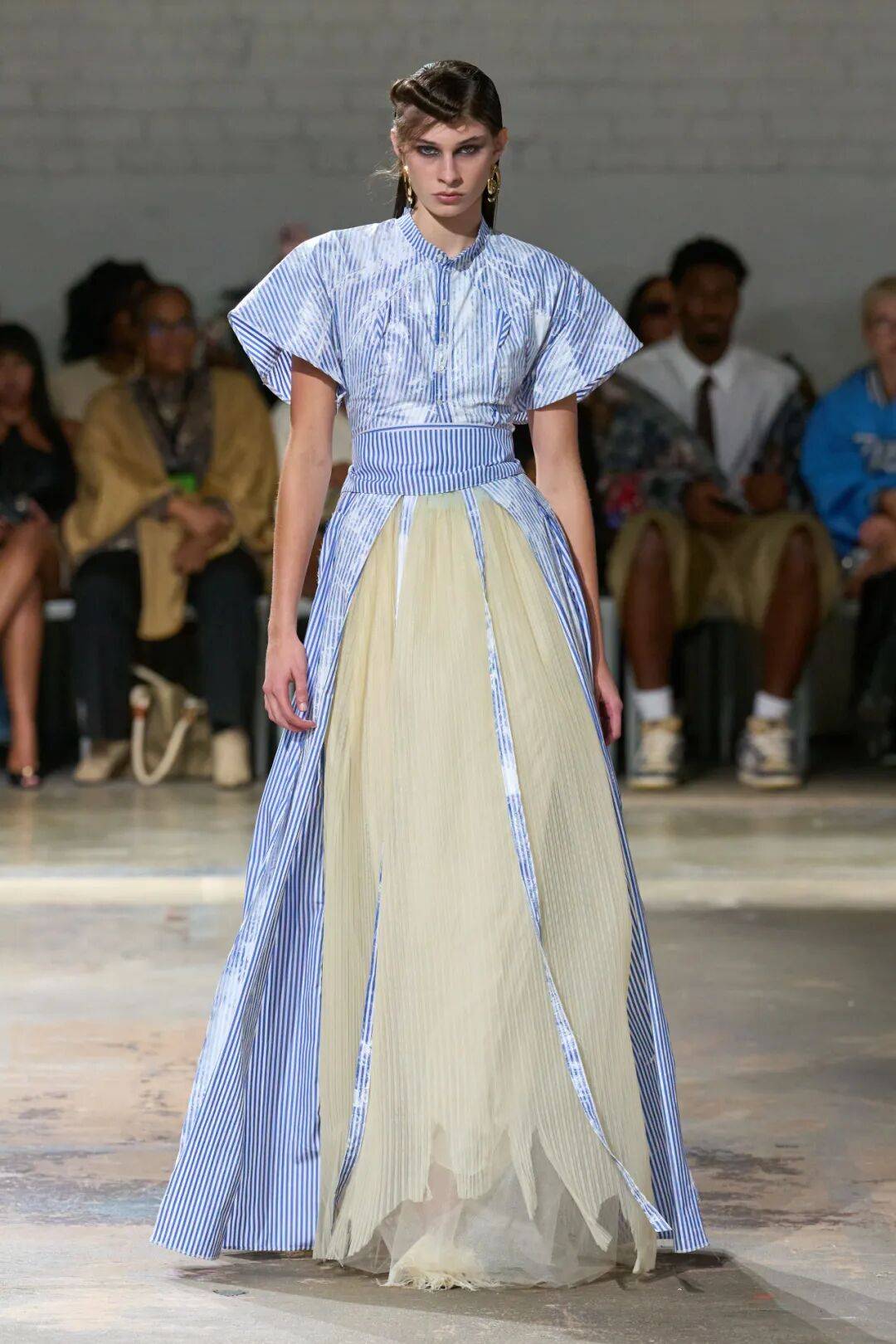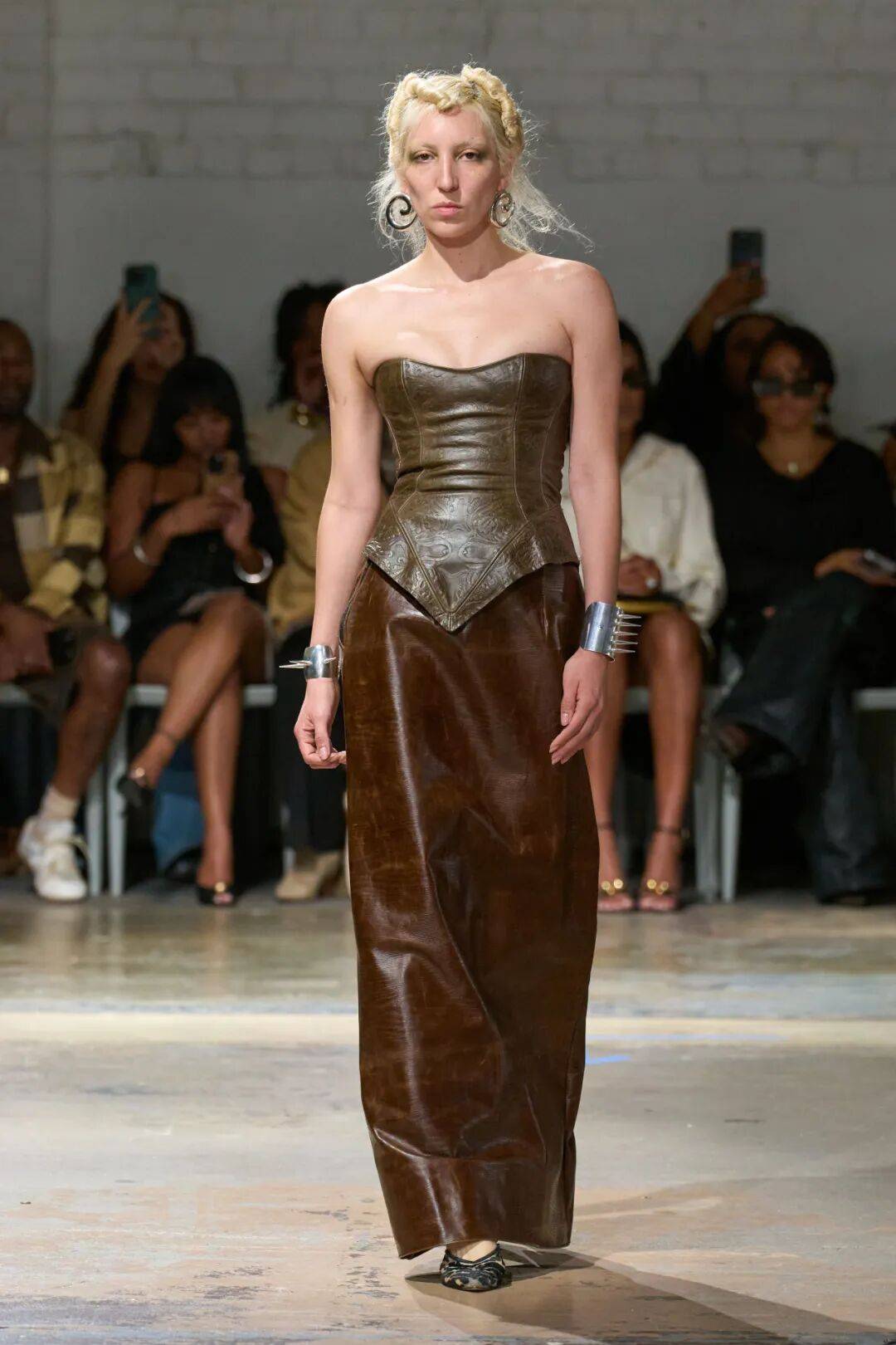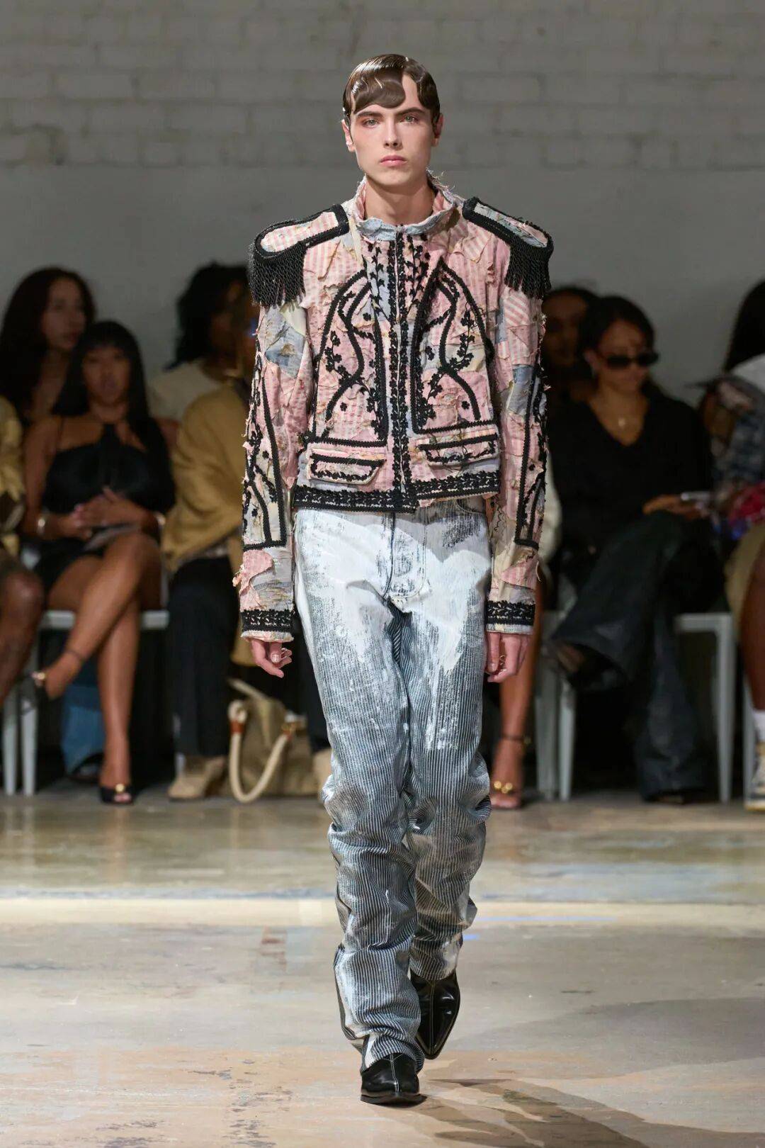 Who Decides War 2026春夏系列"Read the Room"通过材质实验与叙事性设计,呈现了一场关于"毁灭与重生"的视觉盛宴,不仅延续品牌标志性的解构美学,更在剪裁与女性表达上实现突破。这场融合哥特美学与街头精神的秀场,成为纽约时装周上探讨"时代精神"的重要篇章。