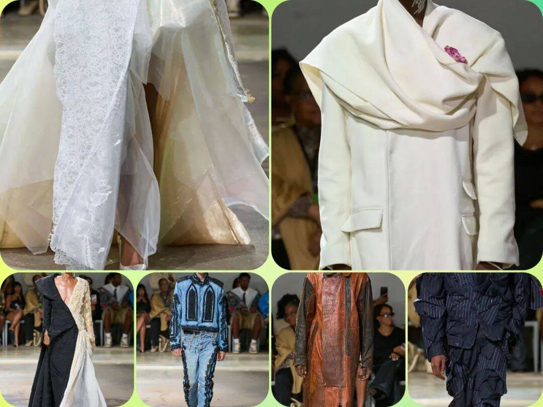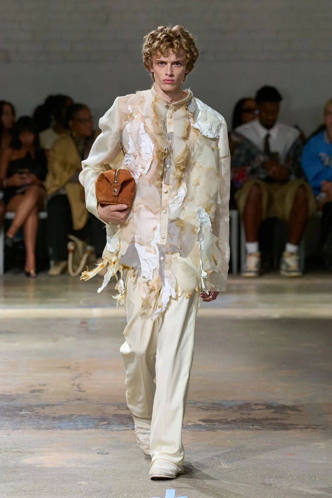破旧面料、毛边和可见接缝强调"腐朽"主题