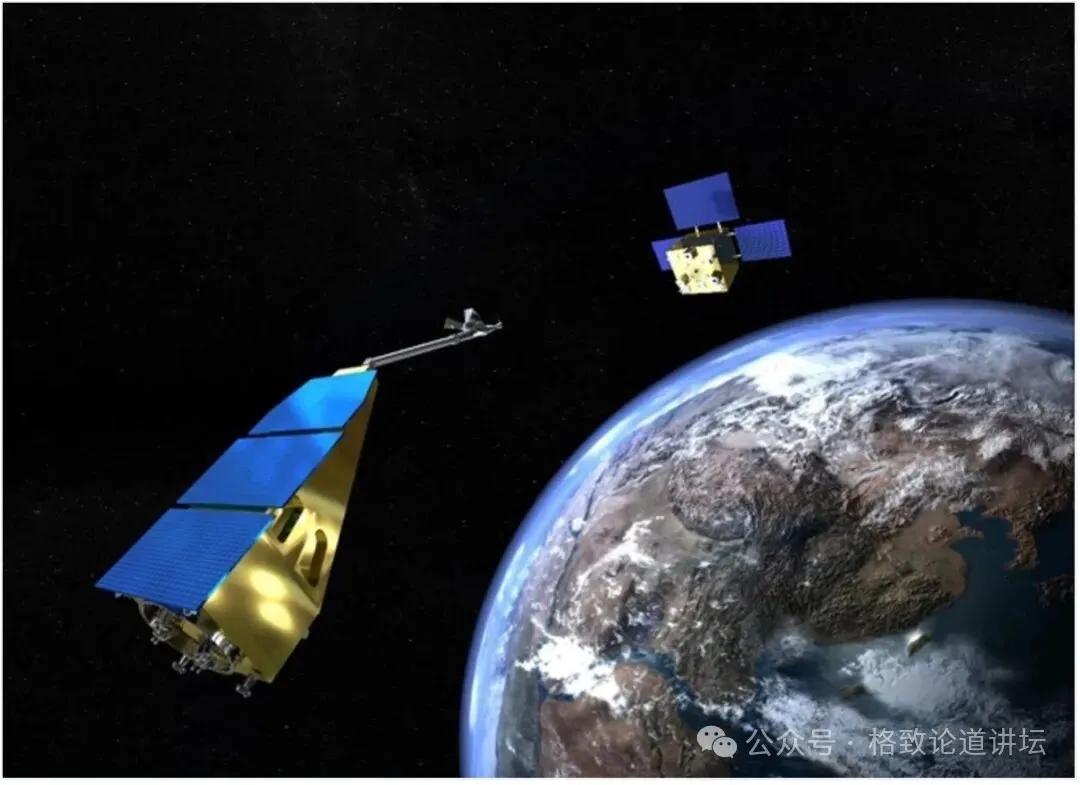 ▲中国地震电磁监测试验卫星 (后)和澳科一号(前)