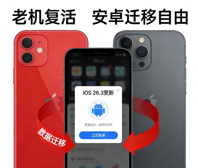 iOS 26.3:1 月 27 日全量推送,大版本,安卓迁移、老机优化全在这儿