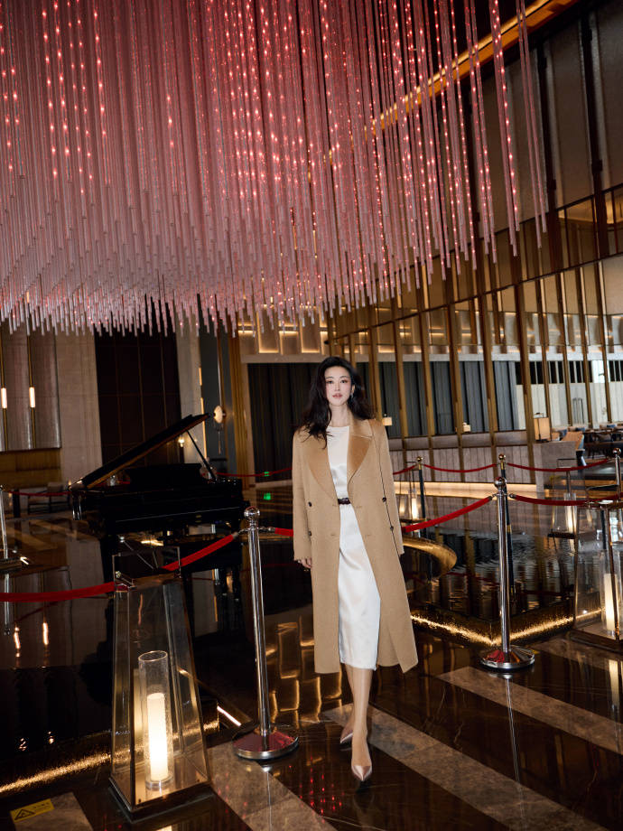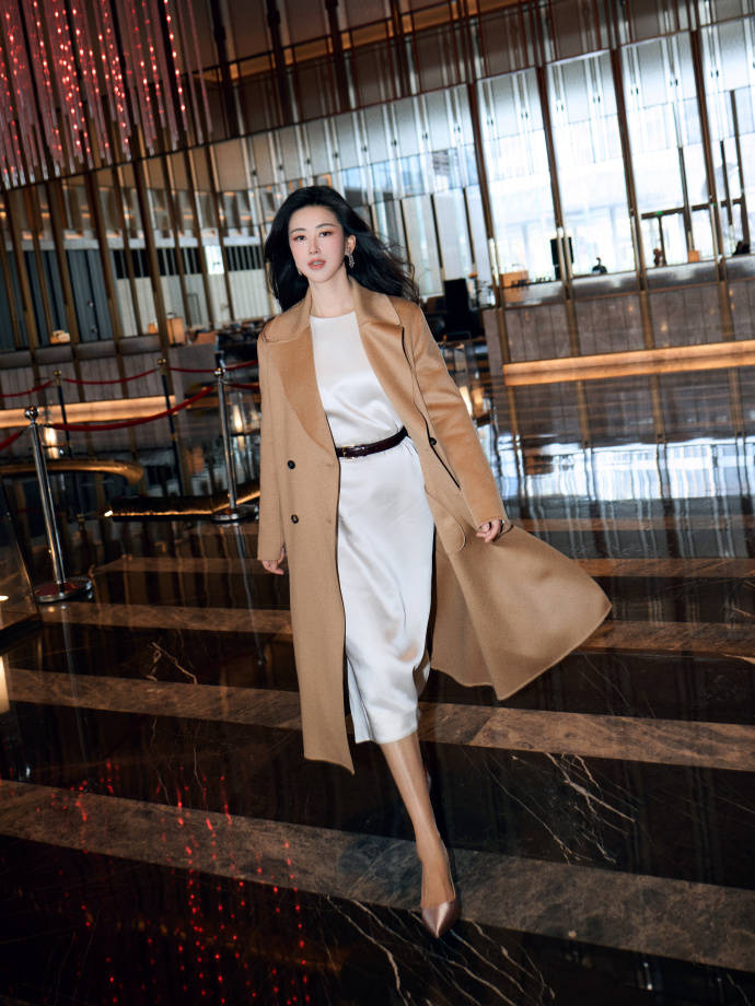我们来看看朱珠的驼色大衣穿搭,真是满满的高级感,很惊艳: