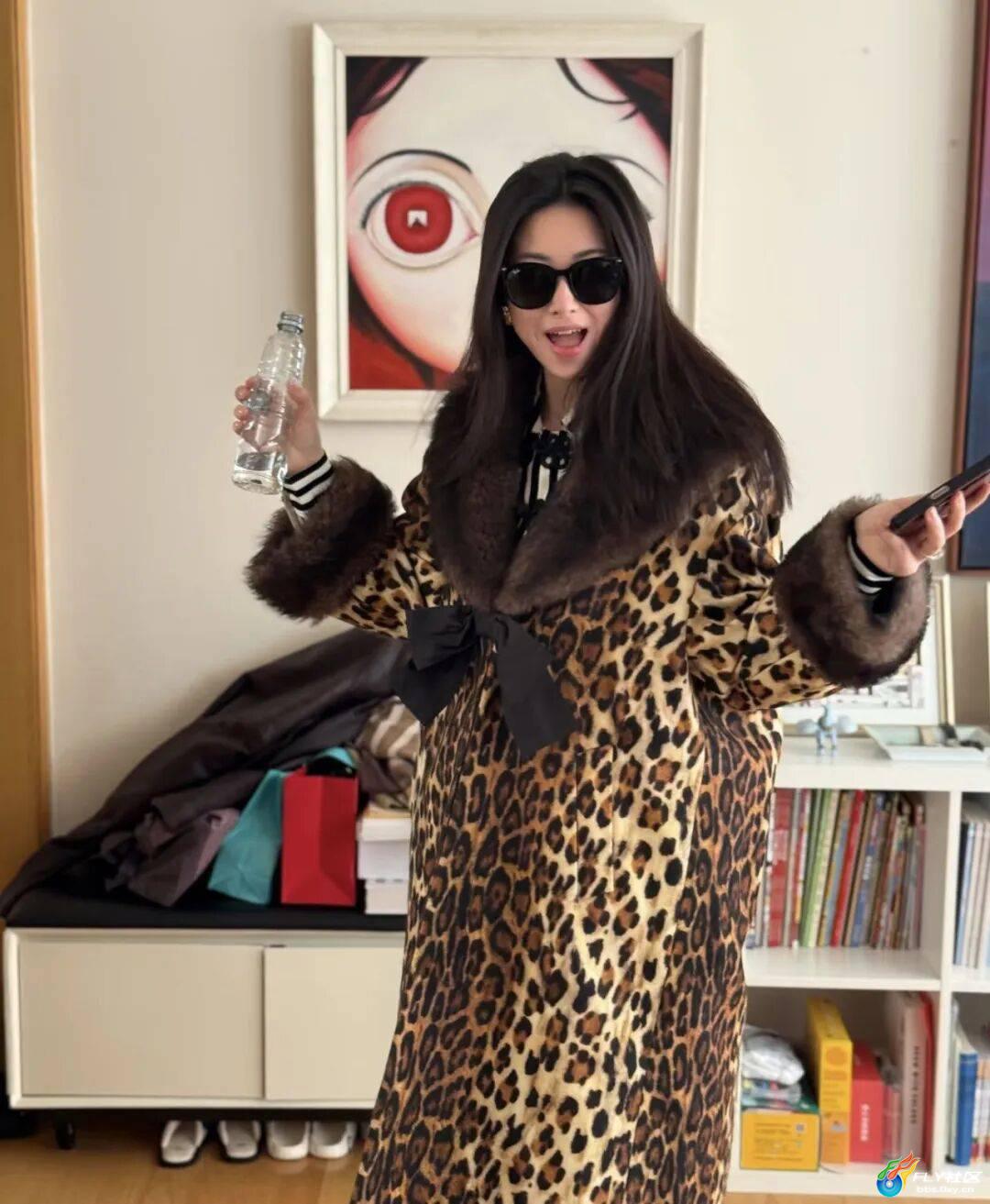 像这套豹纹皮草外套+红裤子,就好辣妹啊,这是在COS古早朱珠嘛哈哈。
