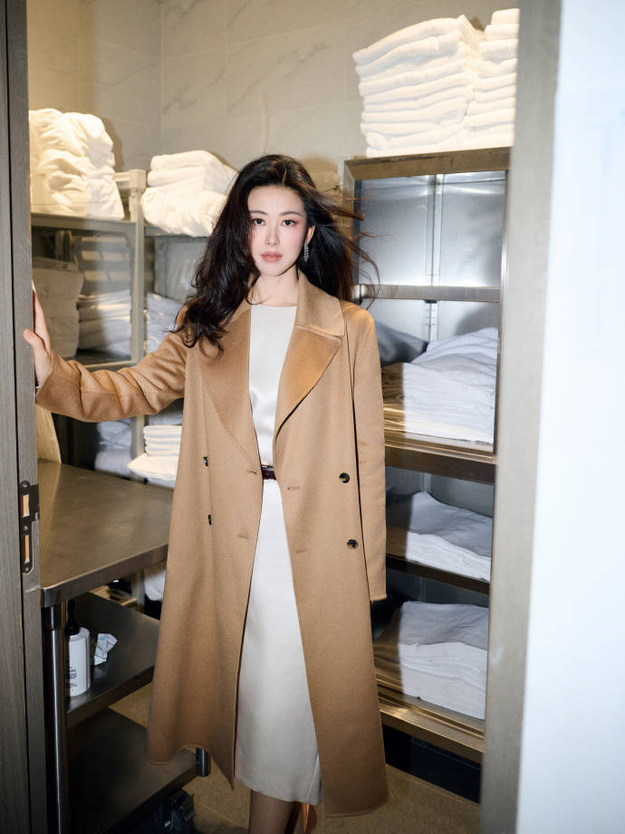 朱珠的大衣,更多的是基础款,在颜色上选择米色,驼色,灰色,白色一类的中性色,简约而高级。