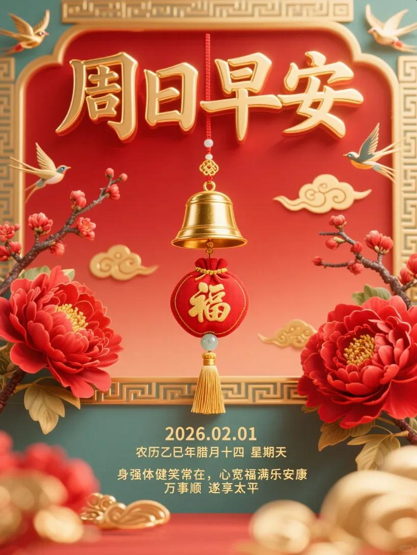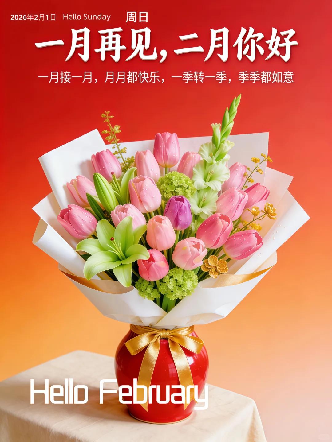 今天是2026年2月1日,星期日,早上好呀~春在前方,年在路上,愿我们:快乐天天拥有,健康相伴永久,顺心日复一日,幸福年复一年,每天阳光灿烂,一生健康平安。周日早安,一月再见,二月你好!