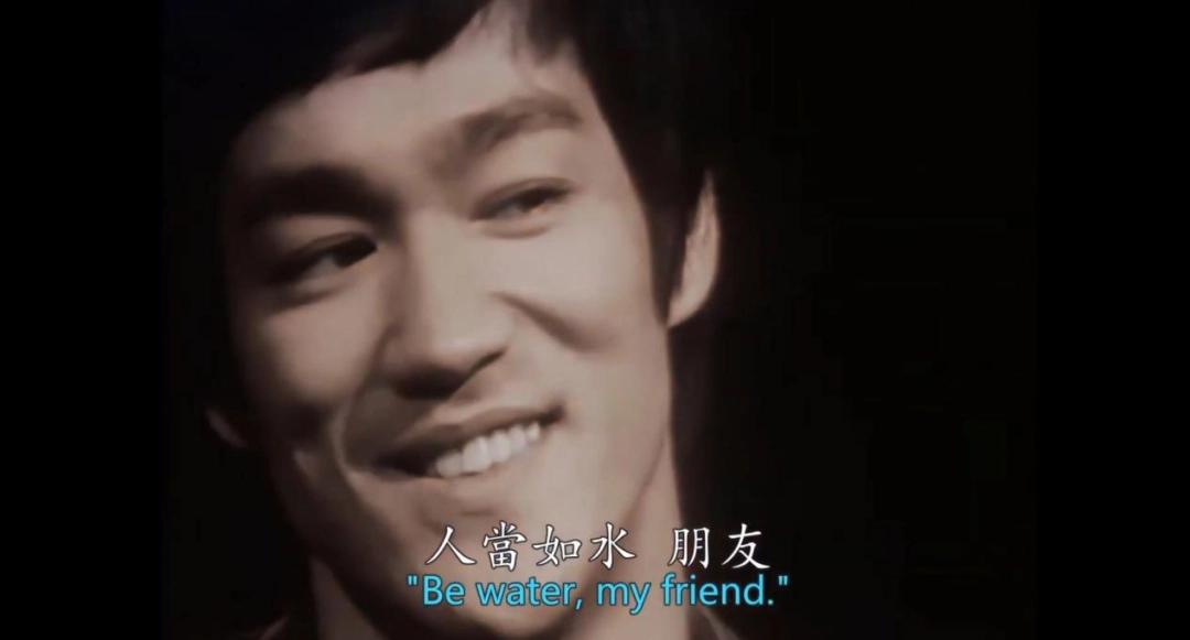 Now you put water into a cup, it becomes the cup. You put water into a bottle, it becomes the bottle. You put it into a teapot, it becomes the teapot. Now water can flow, or it can crash.(入杯,即为杯,入瓶,即为瓶,入壶,即为壶。静可细水潺流,动可骇浪滔天。)