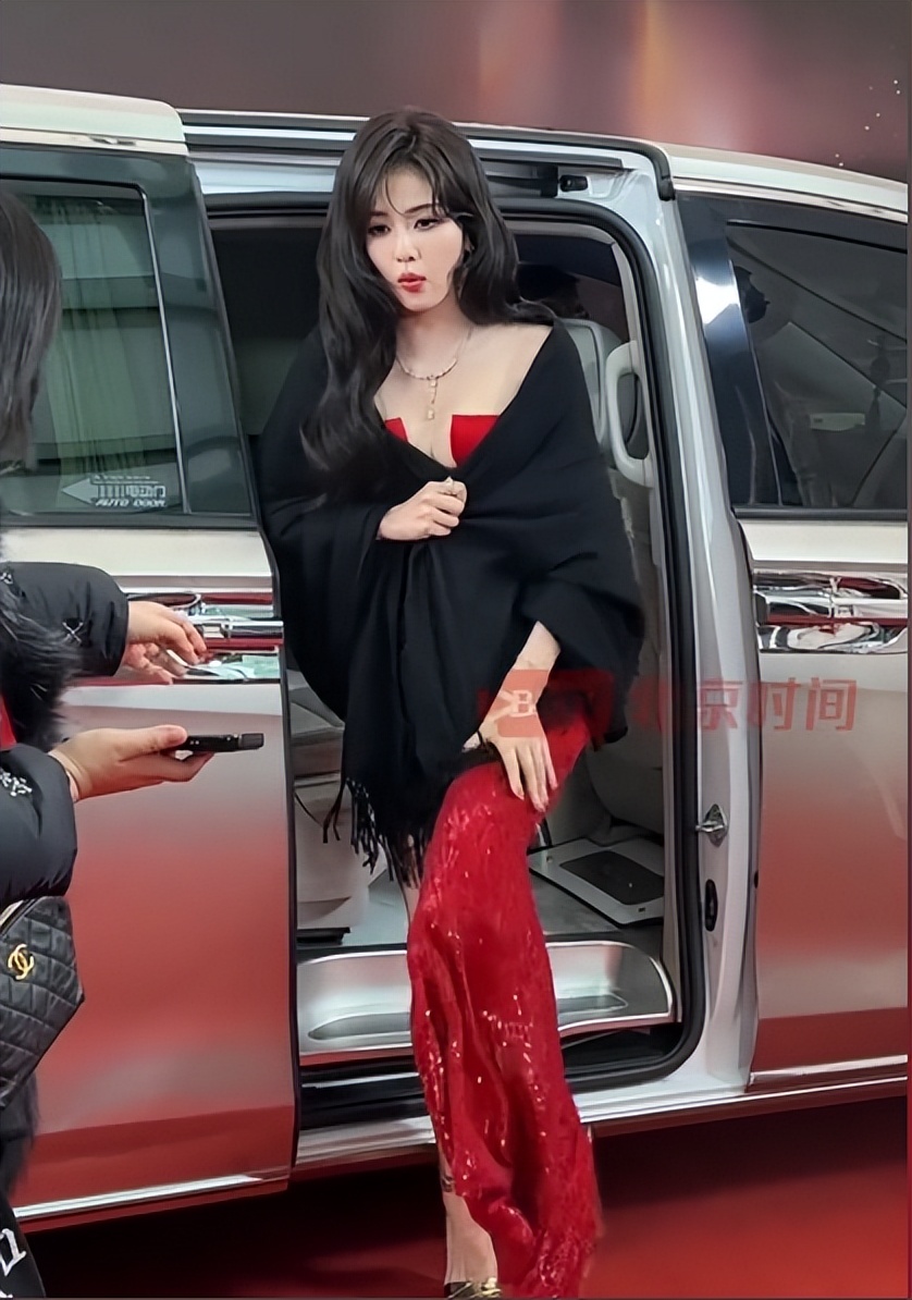 白鹿灼灼红裙比王玉雯还要大胆,所以一下车就裹着黑色的披肩,披散着一头慵懒复古的长卷发,别样风情。逸安我越看越不懂为什么把她划到四普。完全是明艳大美人啊。