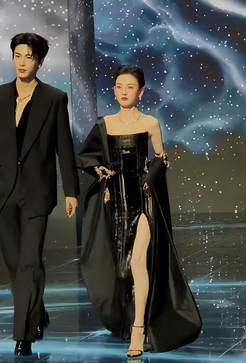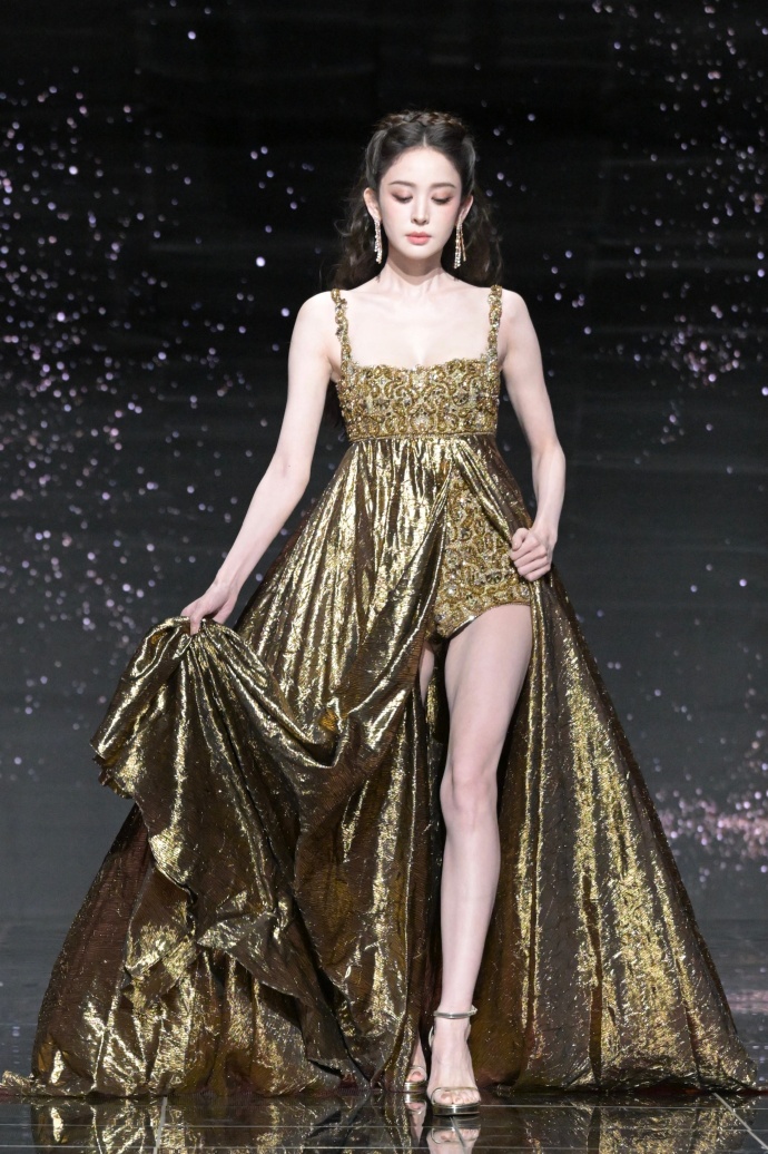 再看凭借荣善宝一角强势出圈的娜扎,一袭鎏金开叉长裙简直就是人间维纳斯降临,比上一次还算收敛。