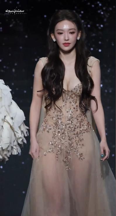 程潇也是一位堂而皇之露出美好内在的女星,只见程潇以一袭裸色深v薄纱鎏金礼服亮相微博之夜,裙子说实话竟然比白鹿穿的还要狂野。