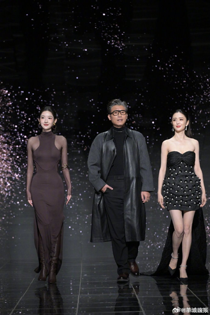 就是陈昊宇也是上下失守的羽毛裙穿搭无比清凉,张予曦则是以银黑拼接长裙造型亮相,亮闪银色压住黑色的闷,乍看还以为是缠胶带成精。而且可惜三人都有点无精打采的感觉!
