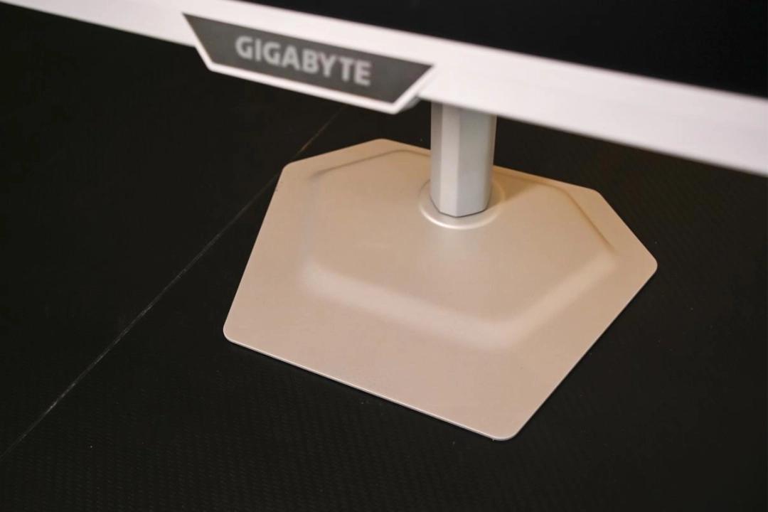 光看外观设计它就已非常讨喜。正面三窄边的边框带来了不错的屏占比,也拉近了游戏画面与玩家的距离,能然你获得极佳的画面沉浸感。纯白色的面板加上表面防滑纹路的处理和中间显眼的技嘉品牌LOGO,也让这台显示器兼具了颜值与辨识度。