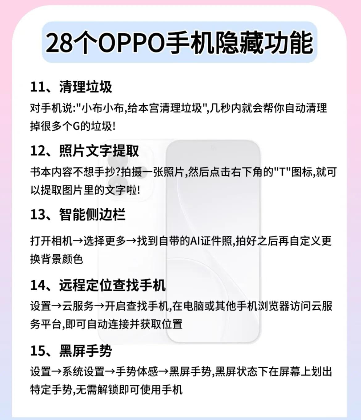手里拿着OPPO手机,却只用到打电话、刷视频这些基础功能?2026年ColorOS 15更新后,藏了超多实用AI功能和隐藏操作,不管是办公、拍照还是日常用机,都能帮你省时间、提效率。这篇超详细攻略全是实测干货,收藏起来,比到处查零散教程管用多了。