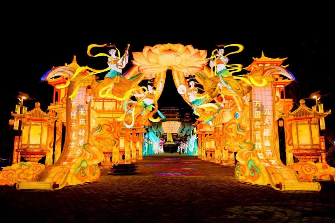 光影流转,便步入“唐宋风华”。“大唐夜宴”极致绚烂:暖黄的宫灯与莲花灯交织成星河,姿态曼妙的飞天乐伎拨动琵琶,彩带与祥云共舞,盛世的繁华与艺术的辉煌在此刻被灯火点燃。“宋韵雅集”则是一片清雅的诗意空间:以宋词卷轴为顶的廊道下,宋代建筑的精巧、泼墨山水的意趣与文人雅士的风流让人瞬间沉浸于那份含蓄而丰盈的古典美学之中。<img src="https://p3-sign.toutiaoimg.com/tos-cn-i-tjoges91tu/d0ddb2425a100bb4efb1c71c1736c9df~tplv-tt-origin-web:gif.jpeg?_iz=58558&from=article.pc_detail&lk3s=953192f4&x-expires=1771369598&x-signature=3zBbhUAL%2BBtyt96Cc7hpQfZZ%2FRs%3D" img_width="1080" img_height="1620" extra="{"origin_web_uri":""}" image_type="1" mime_type="image/jpeg" web_uri="tos-cn-i-tjoges91tu/d0ddb2425a100bb4efb1c71c1736c9df" 0="" 100="" 235text-decoration-thickness:="" data-ratio="1.5" data-w="1266" 1.5pxtext-align:="" blinkmacsystemfont="" mp-quote="" importantmax-width:="" 8="" border-boxfont-family:="" class="rich_pages wxw-img syl-page-img" -cursor:="" data-aistatus="1" initialvertical-align:="" pointercolor:="" important="" 100box-sizing:="" 100max-inline-size:="" 8font-size:="" auto="" rgb191="" 0background-color:="" 16pxletter-spacing:="" 248="" arial="" baselinewidth:="" -apple-system-font="" justifycaret-color:="" rgb255="" sans-serifheight:="" data-src="https://p3-sign.toutiaoimg.com/tos-cn-i-tjoges91tu/d0ddb2425a100bb4efb1c71c1736c9df~tplv-tt-origin-web:gif.jpeg?_iz=58558&from=article.pc_detail&lk3s=953192f4&x-expires=1771369598&x-signature=3zBbhUAL%2BBtyt96Cc7hpQfZZ%2FRs%3D" style="box-sizing: border-box; margin: 0px auto 8px; padding: 0px; max-width: 100%; display: block; border-radius: 4px; cursor: zoom-in; color: rgb(34, 34, 34); font-family: "PingFang SC", "Hiragino Sans GB", "Microsoft YaHei", "WenQuanYi Micro Hei", "Helvetica Neue", Arial, sans-serif; text-align: justify; background-color: rgb(255, 255, 255); height: auto;">