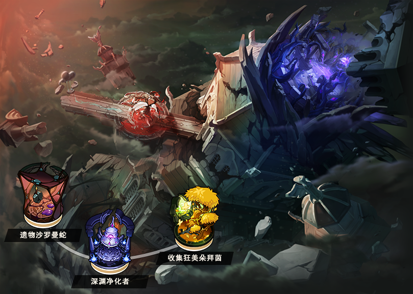 出现在镜子彼端的空间,让人联想到了那熟悉而又令人恐惧的深渊。弥散着深渊魔气的祭司的祭坛,净化的钟声无尽的回响着。副本中在地图的上下左右4个角有4鼎圣钟,当角色身上出现箭头光环时,如果发射的方向上有圣钟,那么圣钟的百分比%数值就会增加,当增加至100%时,即可获得该圣钟对应的BUFF效果。BOSS在舞台中央会发布面对整张地图的攻击,需要玩家找到安全地点进行躲避。
