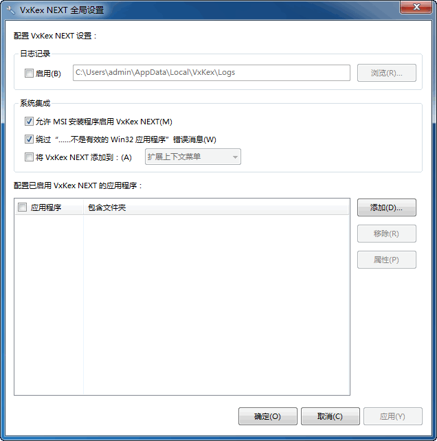 从开始菜单中找到“VxKex NEXT Global Settings”并打开,点击“添加”按钮,选择程序,点击“打开”按钮,并尝试运行程序。